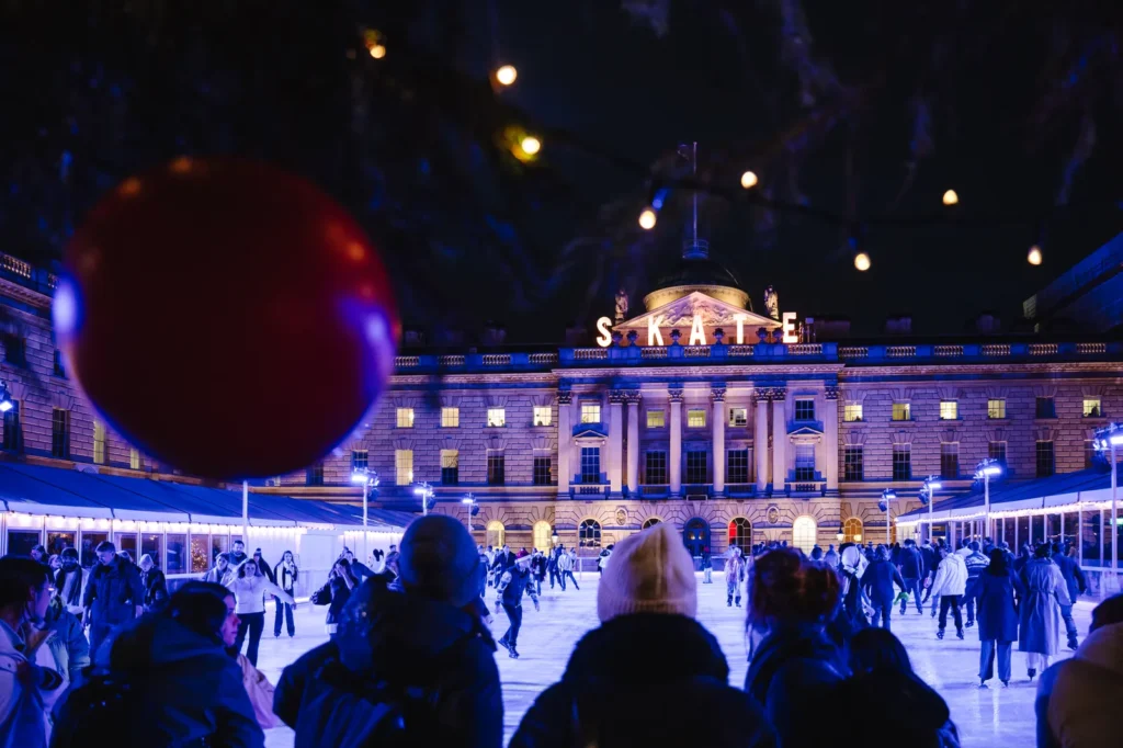 From the moment you walk onto the Somerset House rink, you understand why it has become London’s go-to winter postcard. Fairy lights woven into the courtyard, couples awkwardly gliding hand in hand, children moving with more confidence than most adults, and that grand neoclassical façade looking over everything like it has seen a thousand Christmases and still approves. It’s calm, even when the rink is full. Nobody is good at skating, which is partly what makes it romantic. You hold onto each other, laugh, and inevitably fall into those small moments that make winter in London so special. If luxury is about feeling something, then this is luxury.